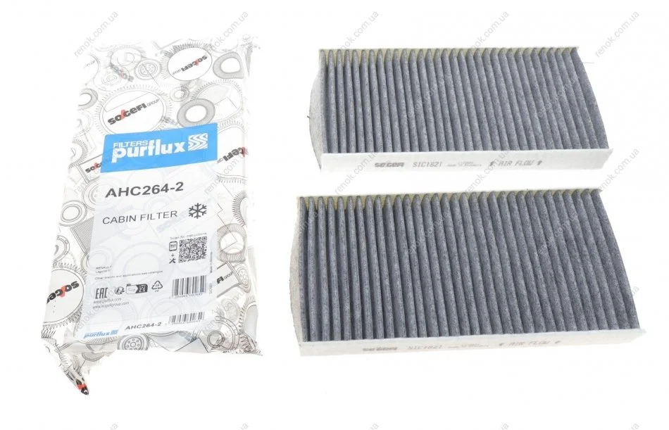 Фільтр салону Renault Laguna III 07- (вугільний) (к-кт 2 шт.) Purflux AHC264-2 (272778773R, 272772951R, 272770001R)