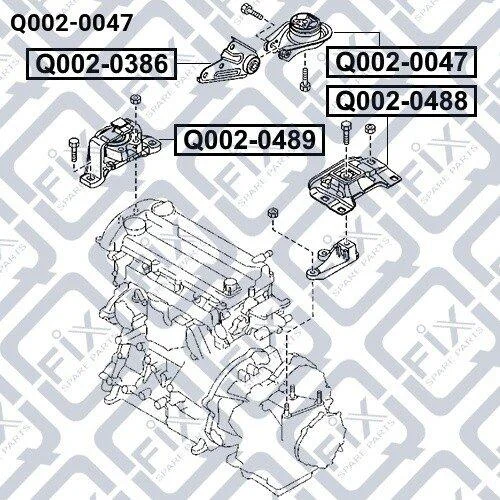 Подушка двигуна задня Mazda 3 1.3/1.6 (BK) 2003-2008/Volvo C30, C70 II, S40 II, V50/Ford C-Max, Focu Q-fix Q0020047 (11210HA00C)