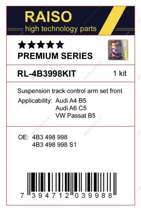 К-кт важелів підвіски перед. Audi A6 C5/Superb I/Passat B5 (з тонким пальцем, конус 16мм) RAISO RL4B3998SKIT