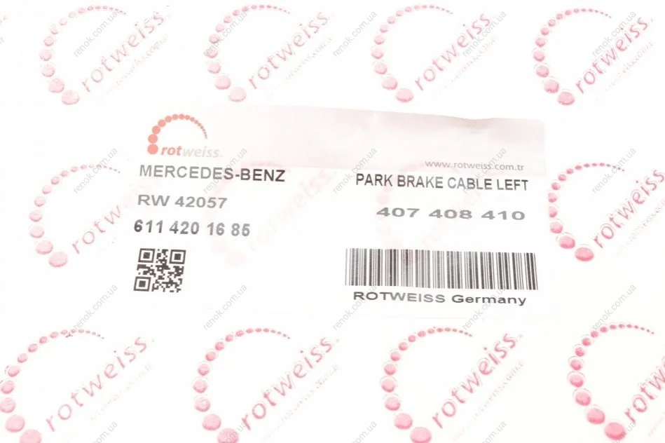 Трос ручника (задній) (L) DB 407-410 (6114201685) ROTWEISS RW42057 (a6114201885, A6114201685, 6114201885)