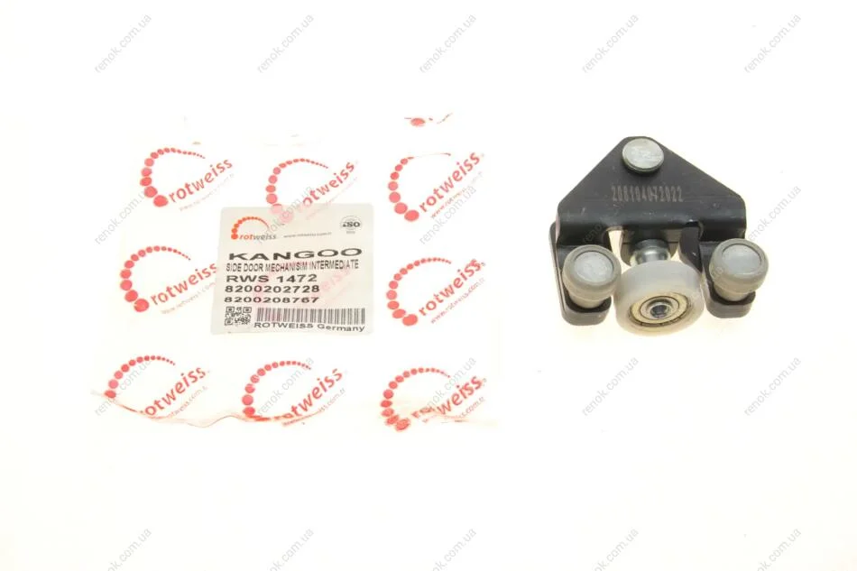 Ролик дверей (бічних/нижній) Renault Kangoo 1.5dCi/1.9dTi 97- (R) (без кронштейна) ROTWEISS RWS1472 (8200202728, 7700308223)
