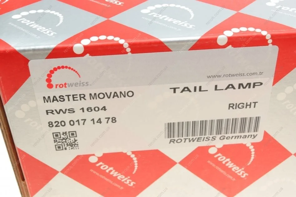 Ліхтар задній Renault Master 03-09 (R) ROTWEISS RWS1604 (8200171478, 7700352703, 2655000QAD)