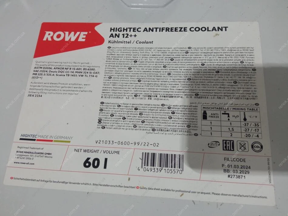 Антифриз HIGHTEC ANTIFREEZE COOLANT AN 12 ++ (60 L) ROWE 21033-0600-99