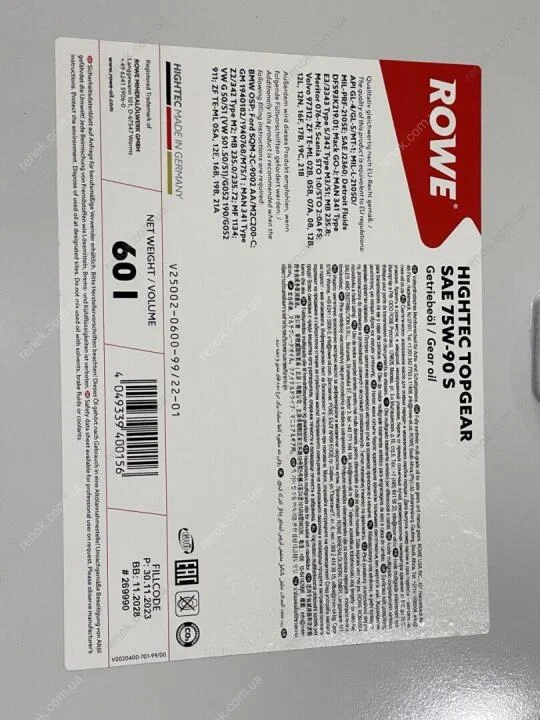 Олива трансмісійна HIGHTEC TOPGEAR SAE 75W-90 S (60 L) ROWE 25002-0600-99