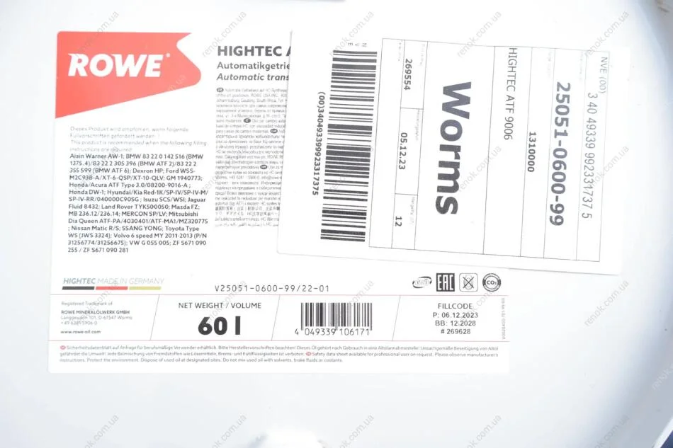 Олива трансмісійна HIGHTEC ATF 9006 (60 L) ROWE 25051-0600-99