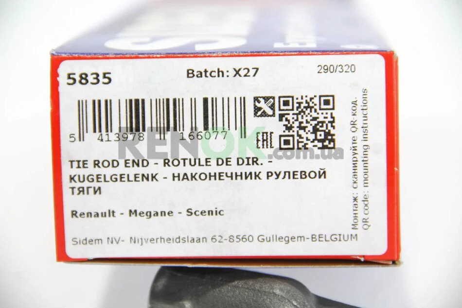 Наконечник рульової тяги Clio III/Megane II 02- Пр. SIDEM 5835 (7701054584, 7701474796)