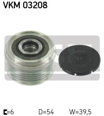 FIAT шків генератора Punto/Grande Punto 1,3D Multijet, OPEL 1,3CDTI 05-. SKF VKM 03208 (6204286, 77364723, 93192215)