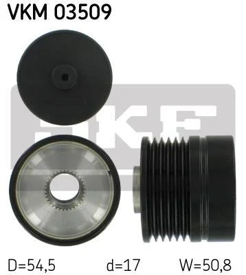 FIAT Шкив генератора Punto/Grande Punto 1,3D Multijet, OPEL 1,3CDTI 05-. SKF VKM 03509 (6204229, 77364721, 93185282)