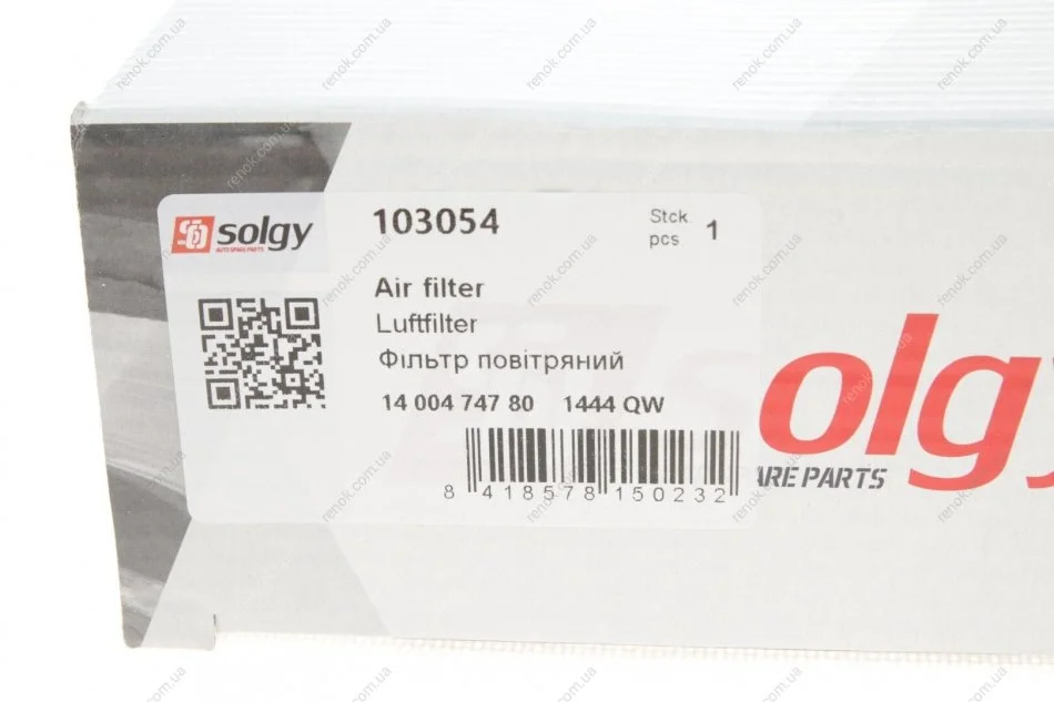 Фільтр повітряний Fiat Scudo/Citroen Jumpy 2.0 HDI 07- SOLGY 103054 (1444WN)