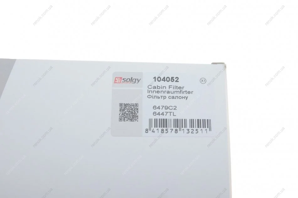 Фільтр салону SOLGY 104052 (6447KK, 6447NT, 6447TL)