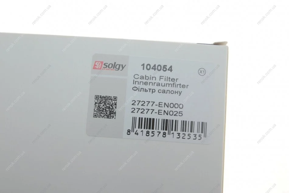 Фільтр салону SOLGY 104054 (22277EN000, 27277EN000, 27277EN025)