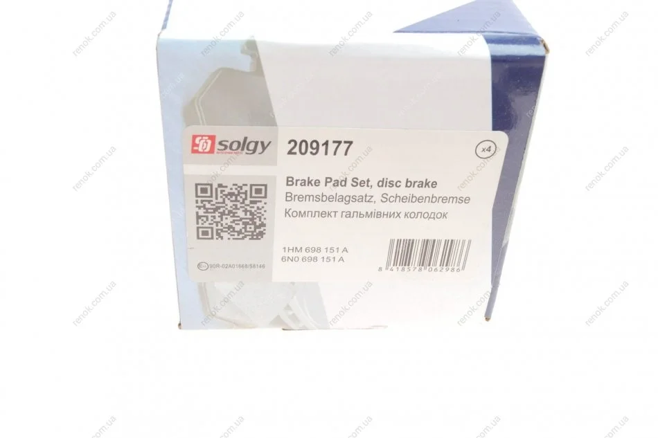 Колодки гальмівні (передні) Seat Cordoba/Ibiza/VW Caddy/Golf/Polo 91-04/Passat B3/B4 88-97 SOLGY 209177