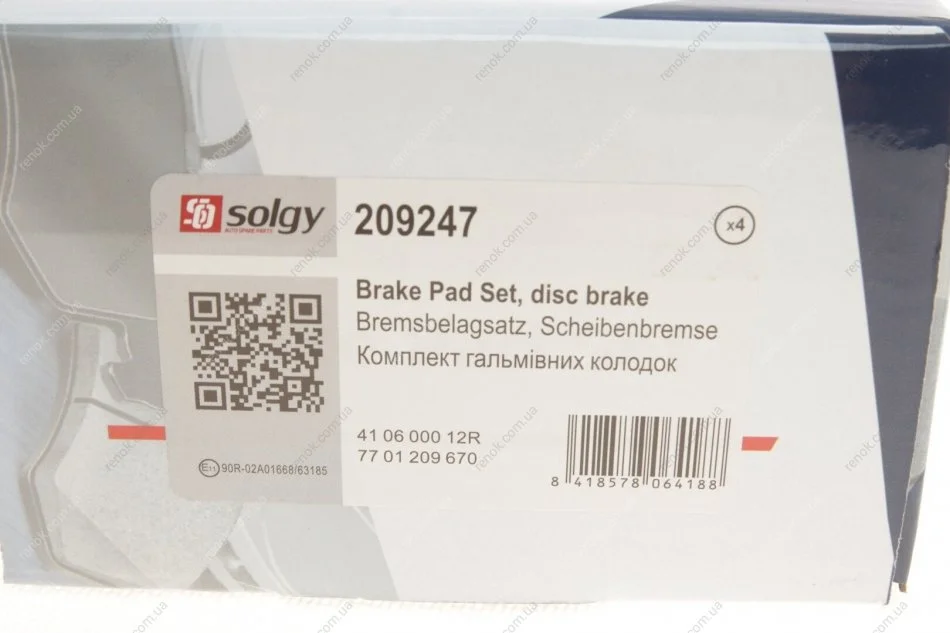 Колодки гальмівні (передні) Renault Laguna III/Clio III 06-15/Megane II/Scenic II 02- SOLGY 209247 (410600012R, 410601237R, 7701209100)