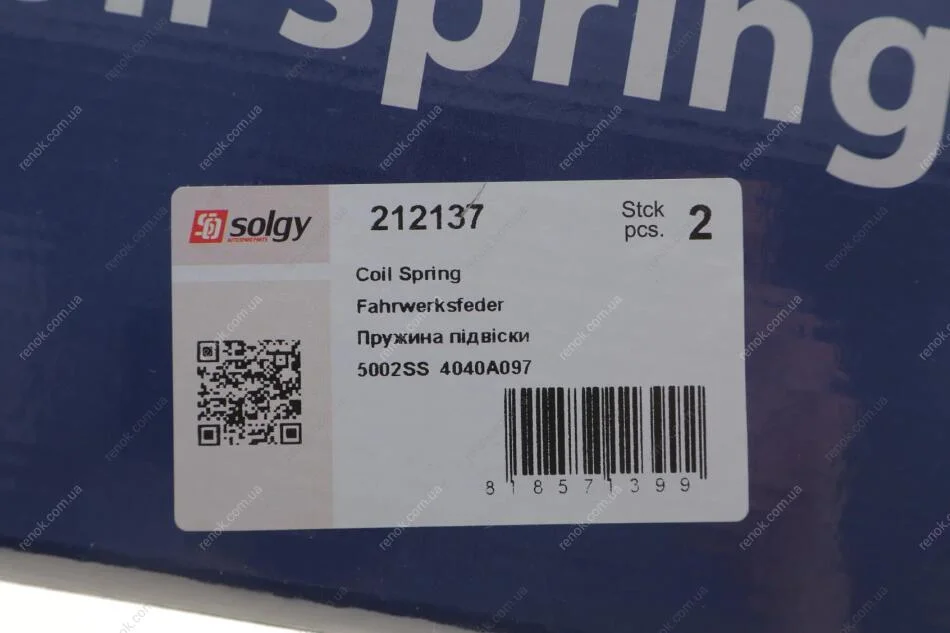 Пружина підвіски SOLGY 212137 (5002SS, 5002WP)
