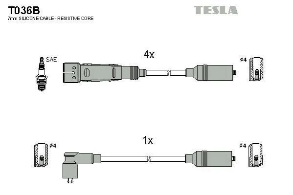 Комплект высоковольтных проводов TESLA T036B