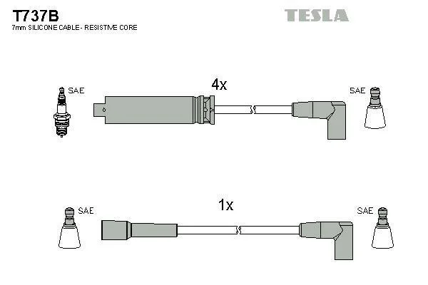 Кабель запалювання к-кт Daewoo Espero 91-98 1,8 TESLA T737B (12087927, 92060980)