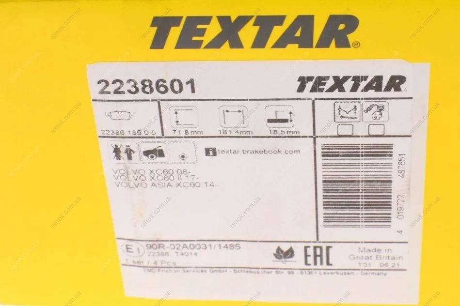 Аналоги "2238601 TEXTAR":