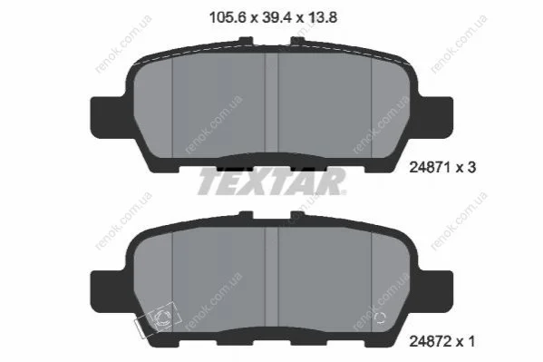 Колодки гальмівні (задні) Nissan Tiida/Teana/Murano 08-/Suzuki Grand Vitara 05- (105.6x39.4x13.8) TEXTAR 2487101 (d40603TA3A, 440608H3X5, D4060JA00J)