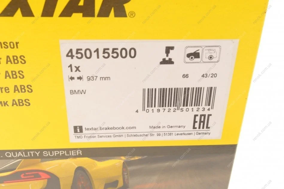 Датчик ABS (передній) BMW 5 (F10)/7 (F01/F02/F03/F04) 2.0-4.4 09-18 (L=937mm) TEXTAR 45015500 (34526784902, 6784902)