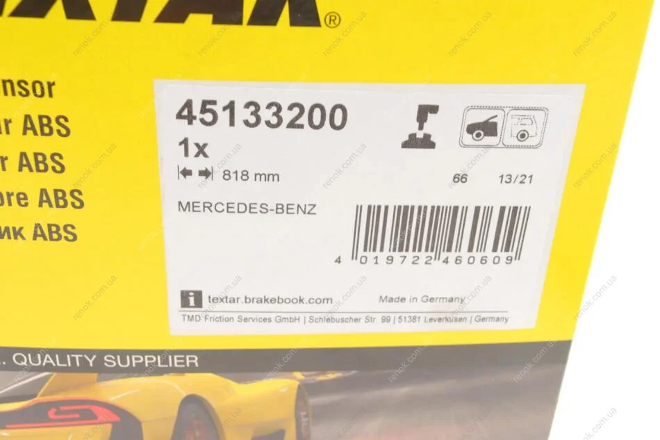 Датчик ABS (передній) MB GLK (X204)/C-class (W204) 07-14 TEXTAR 45133200 (2045400517, A2045400517)