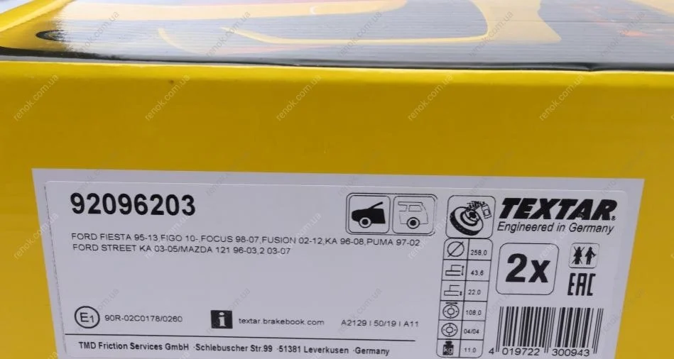 Аналоги "92096203 TEXTAR":