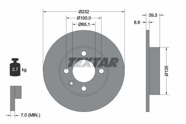 Диск гальмівний задн Лів/Прав (без маточини) SEAT AROSA, CORDOBA, CORDOBA VARIO, IBIZA II VW LUPO I, POLO, POLO III, POLO III CLASSIC 1.0-1.9D 02.93-07.05 TEXTAR 92098203 (6N0615601A, 6N0615601B)