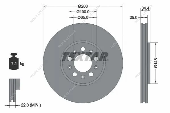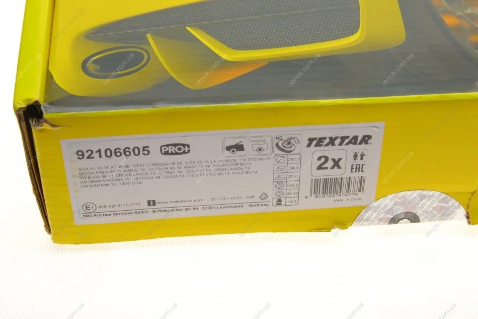 Диск гальмівний (передній) Skoda Roomster 06- (287x25) PRO+ TEXTAR 92106605 (1J0615301, 1J0615301C, 1J0615301K)