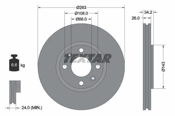 Тормозной диск TEXTAR 92111600 (1606401480, 4246W2, 4246W8)