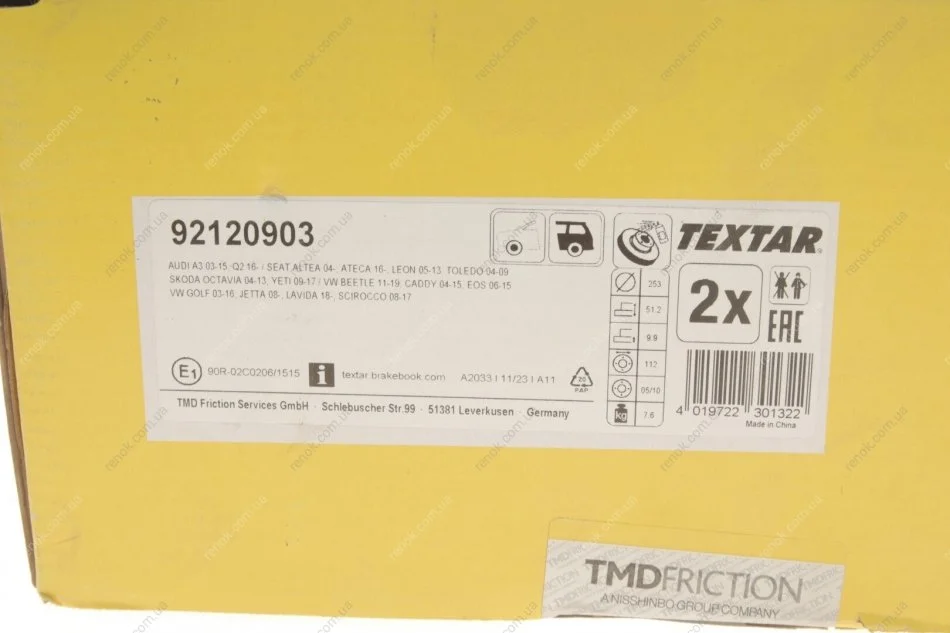 Аналоги "92120903 TEXTAR":