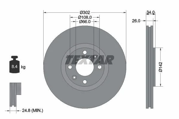Тормозной диск TEXTAR 92133200 (1606308280, 4246C0, 4246P5)