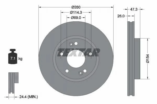 Диск тормозной TEXTAR 92133903 (517121D100, 517121F000, 517121F300)