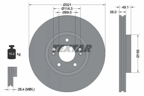 Диск гальмівний (передній) Hyundai Santa Fe 06-/Kia Sorento 09- (321x28) (замінено на 92166005) TEXTAR 92166003 (517122B700)