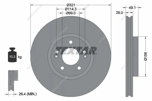 Товщина гальмівного диску (мм): 28
