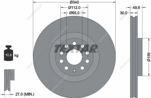 Диск гальмівний (передній) VW Passat 08-/Golf 12- (340x30) PRO+ TEXTAR 92229805 (1K0615301AD, 3C0615301C, 8S0615301)