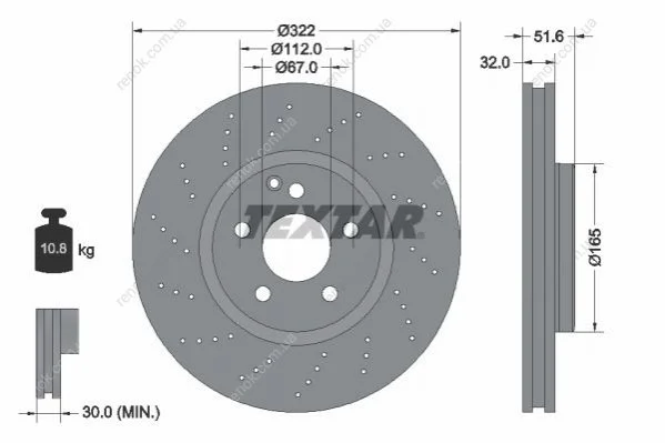 Диск гальмівний (передній) MB CLS (C218) 11- (322x32) PRO+ TEXTAR 92277705 (a2184210312, A0004211812, 2184210312)