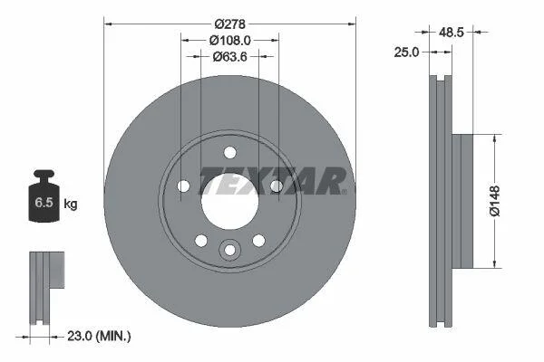 Диск гальмівний передн Лів/Прав VOLVO V40 1.5-2.5 03.12-08.19 TEXTAR 92292303 (31341642, 31381374)
