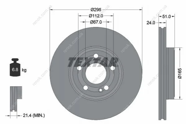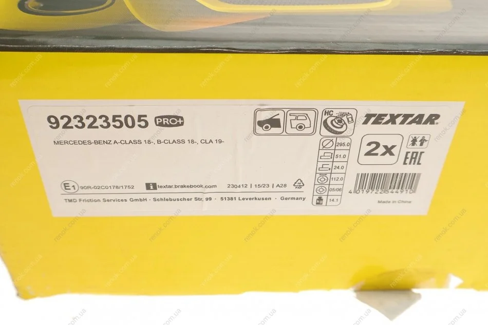 Диск гальмівний (передній) MB A-class (W177) /B-Class (W247) 18-/CLA 19- (295x24) PRO+ TEXTAR 92323505 (2474210312, A2474210312)