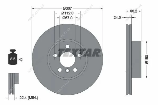Диск гальмівний (передній) BMW 2 (G42)/3 (G20/G80)/4 (G26/G23/G83) 20- (307x24) PRO+ TEXTAR 92326805