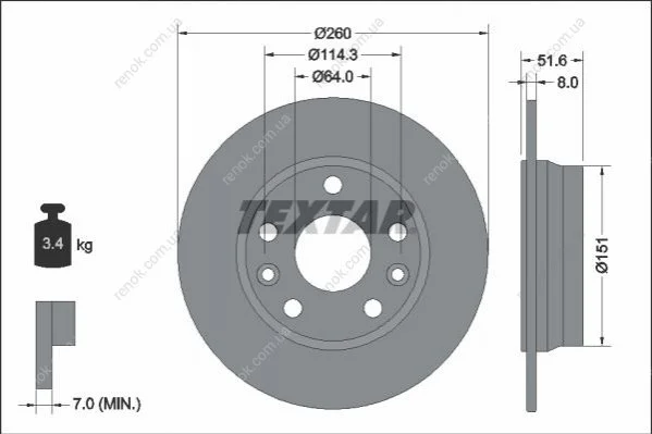 Диск гальмівний (задній) Renault Captur/Megane IV 19- (260x8) PRO TEXTAR 92337703 (4320600Q1A, 432064941R, 440A06575R)