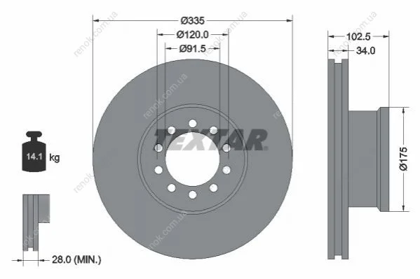 Диск гальмівний TEXTAR 93101300 (9704210112, 9704210212, 9704210612)