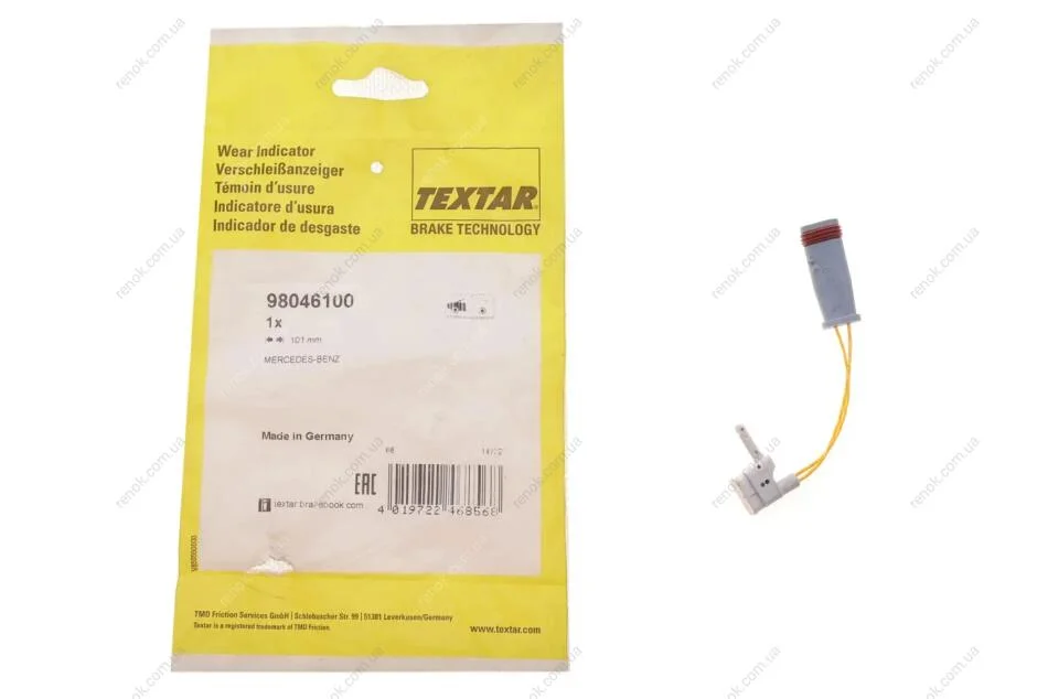 Датчик зносу гальмівних колодок (передніх) MB E-class (W211/S211) 02-09 (L=101mm) (1шт.) TEXTAR 98046100 (2115400717, A2115400717)