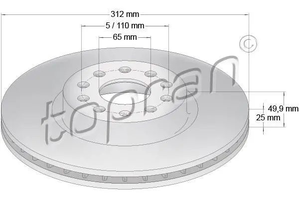 Диск гальмівний передній TOPRAN / HANS PRIES 110 073 (1K0615301AA, 5Q0615301F, 5N0615301)