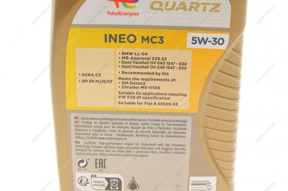 Олива 5W30 Quartz INEO MC3 Dexos2 (1л) TOTAL 213769 (000989820711FBDD, 000989700611ABDE, 000989690611ABDE)