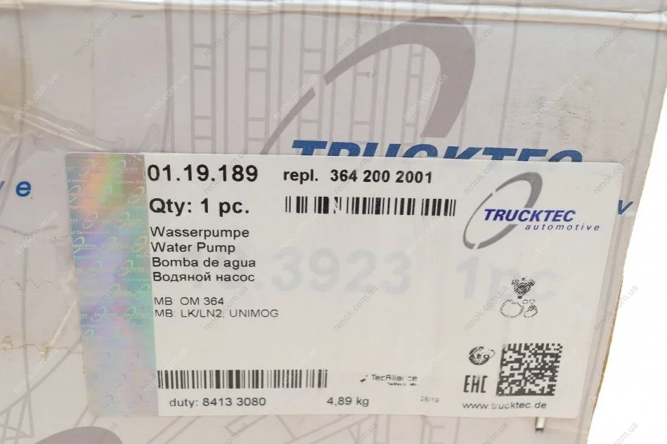 Насос водяний TRUCKTEC 01.19.189 (3642000101, 3642000901, 3642002001)