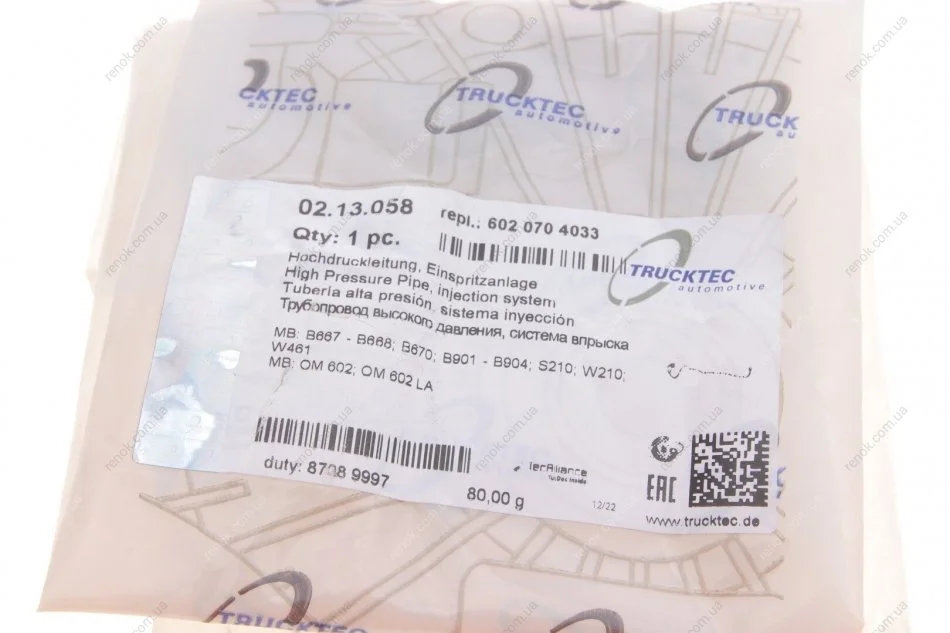 Трубка паливна високого тиску MB Sprinter 2.9TDI (4 циліндра) TRUCKTEC 02.13.058 (6020701433, 6020701933, 6020702933)