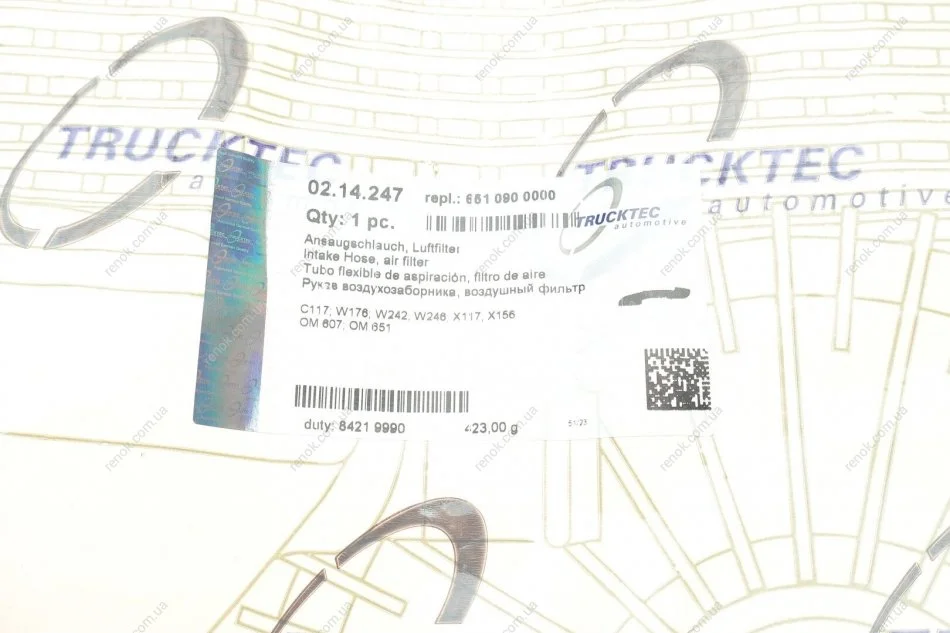 Патрубок повітряний AUTOMOTIVE TRUCKTEC 02.14.247 (6510900000, 6510904337, A6510900000)