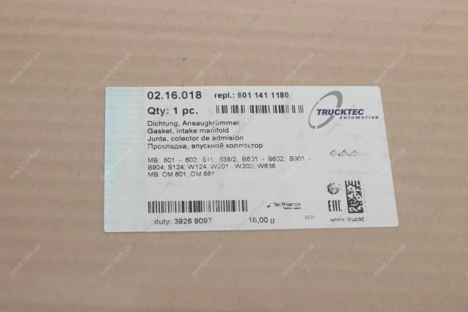 Прокладка колектора впускного MB OM601 TRUCKTEC 02.16.018 (6011410180, 6011410280, 6011410580)