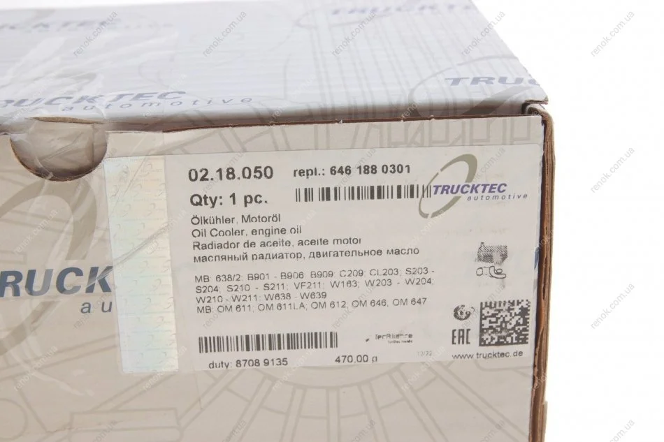 Радіатор масляний MB Sprinter/Vito OM611/646 (теплообмінник) TRUCKTEC 02.18.050 (05080402AA, 05183940AA, 05080146AB)