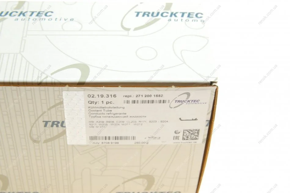 Патрубок системи охолодження MB C-class (W203/W204)/E-class (W211/W212) 02-15/Sprinter (W906) 08- TRUCKTEC 02.19.316 (2712001152, 2712001552, A2712001152)