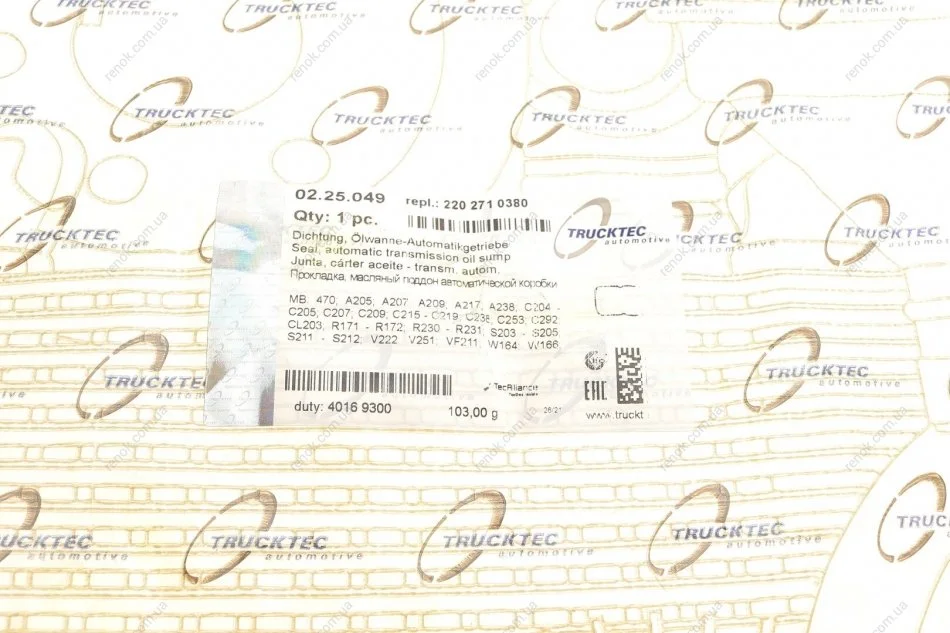 Прокладка піддону АКПП MB (W164/W211) TRUCKTEC 02.25.049 (a2202710380, 2202710180, 2202710380)